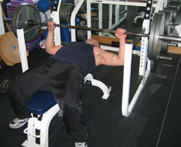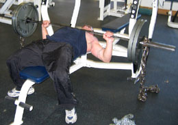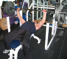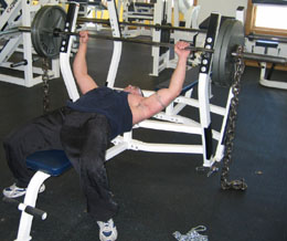 Having a spotter hold a 2x4, or 2 nailed boards together and resting on your chest, lower the bar to your chest and rest it on the board and explode of the board after it has rested on the board for 1 second and repeat for 3-5 repetitions