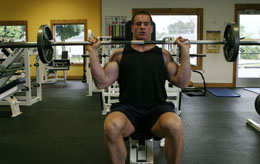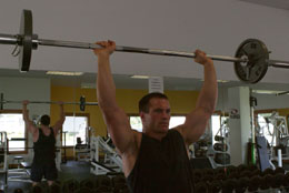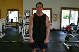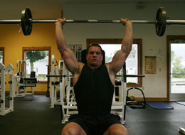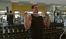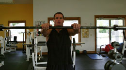 Finish: Press bar up over head extending arms while keeping shoulders back