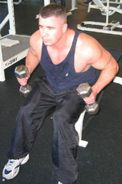 Finish: Keeping elbow from lowering or swinging raise dumbbell up